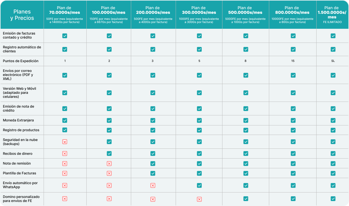 El más económico incluye hasta 50 facturas mensuales por solo Gs. 70.000.