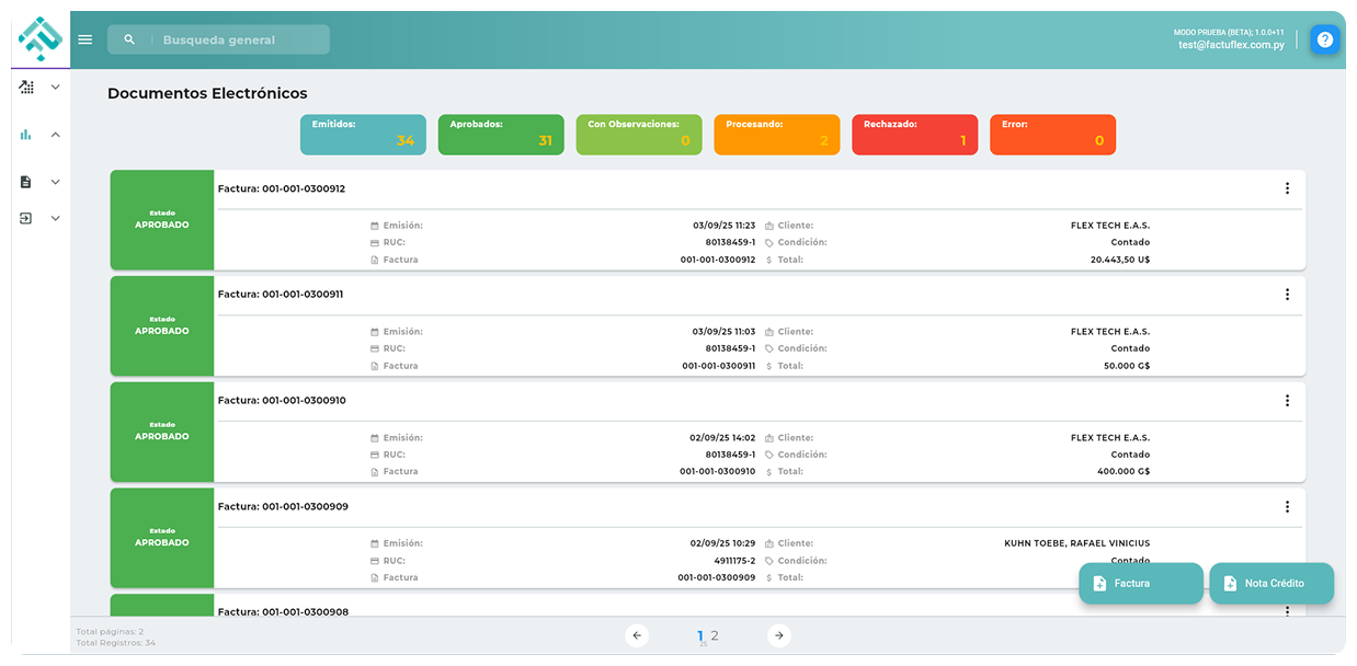En caso de que el usuario supere la cantidad de facturas electrónicas incluidas en su plan mensual contratado, se aplicará un costo adicional de 1000Gs. por cada comprobante excedente emitido durante ese mes
